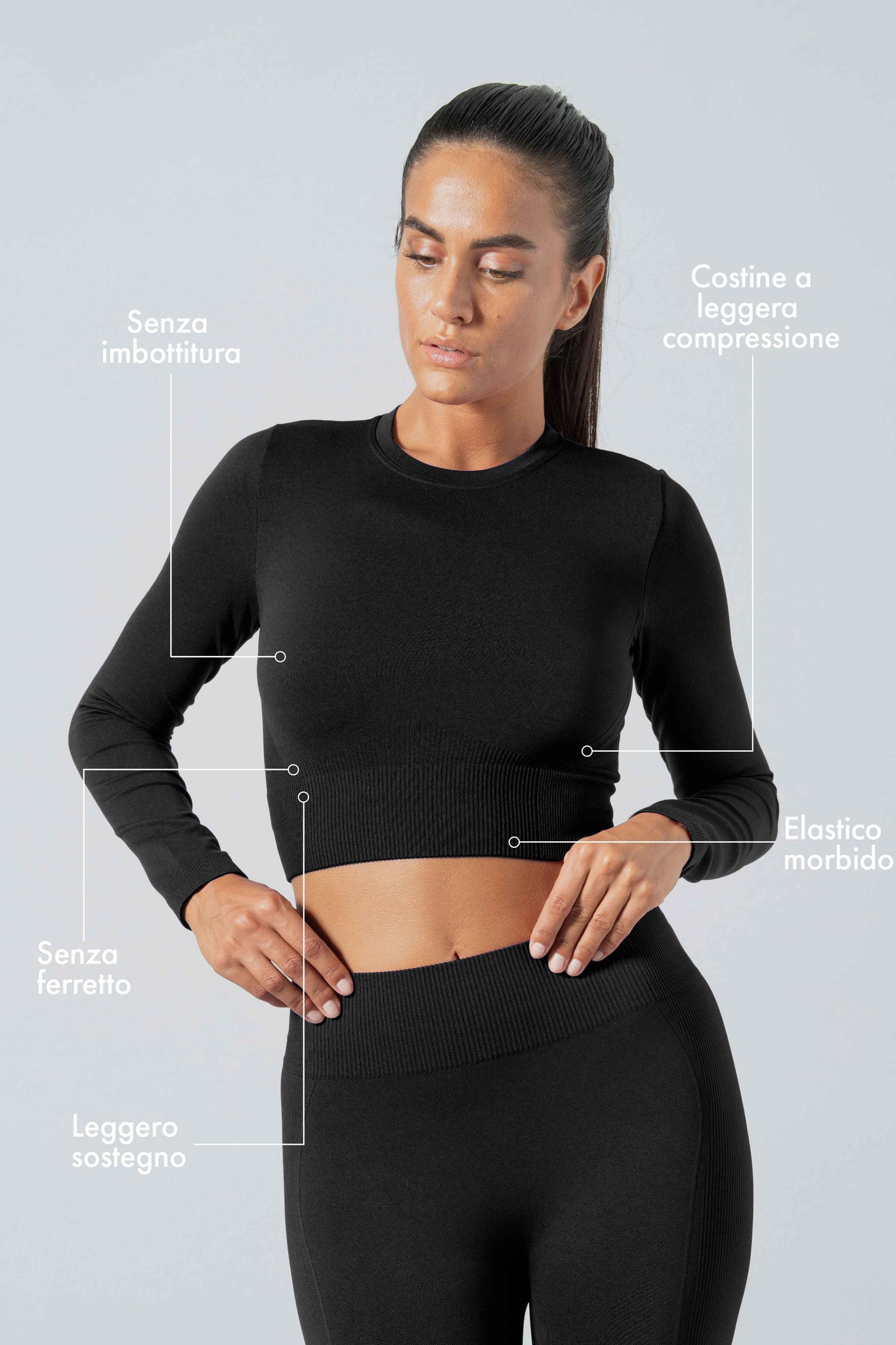 Crop Top Sportivo Manica Lunga in Microfibra Seamless Ilena