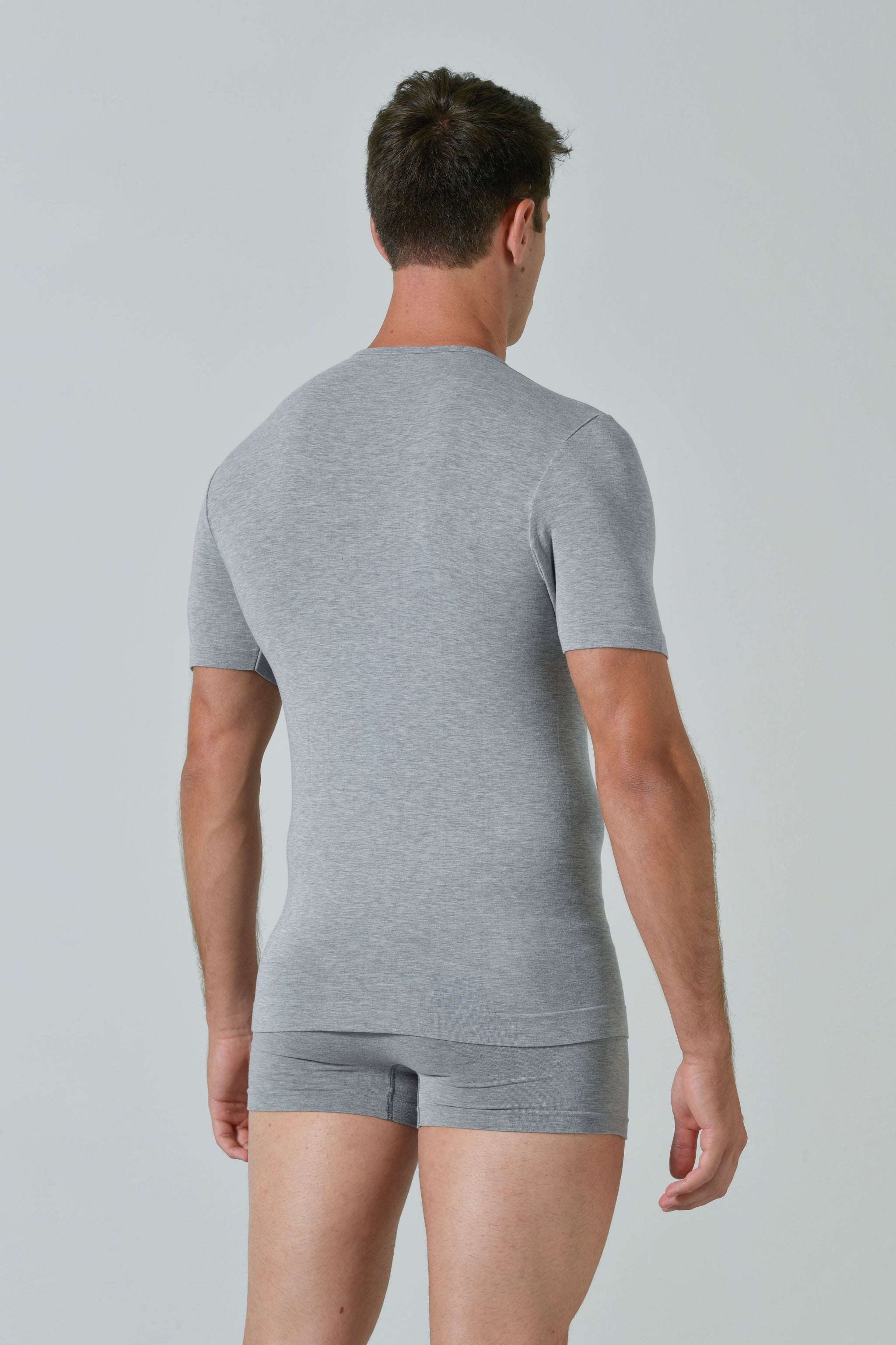 La viscosa di bamboo, rinomata per le sue proprietà traspiranti e delicate, è trattata con tecnologia antibatterica e antiodore, assicurando freschezza e igiene anche dopo numerosi lavaggi. Ideale come capo intimo o come base per un look casual e raffinato.