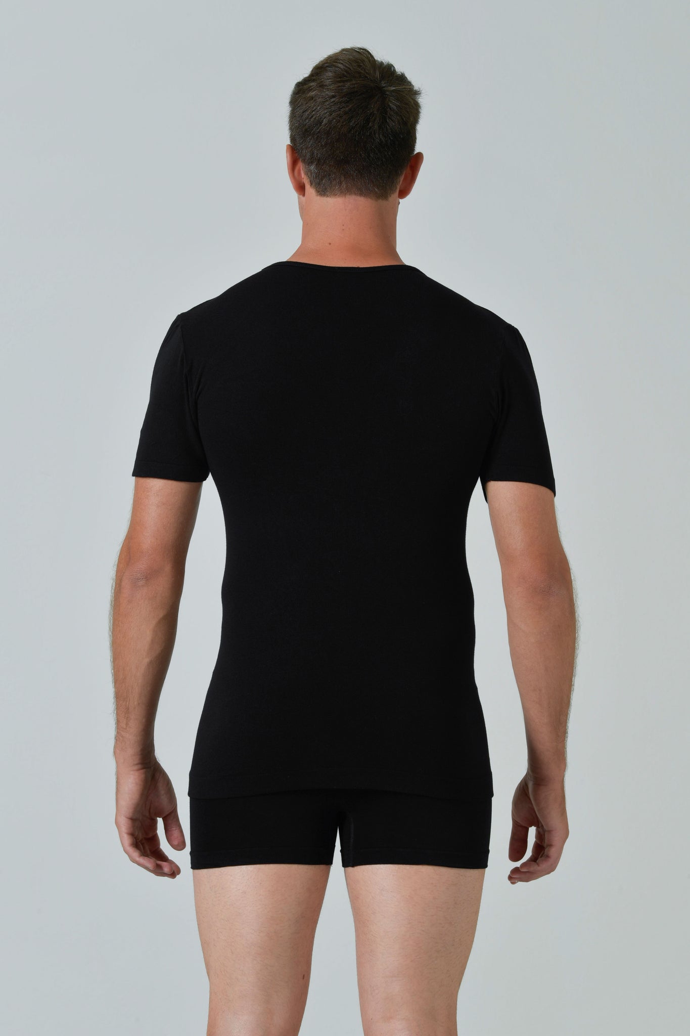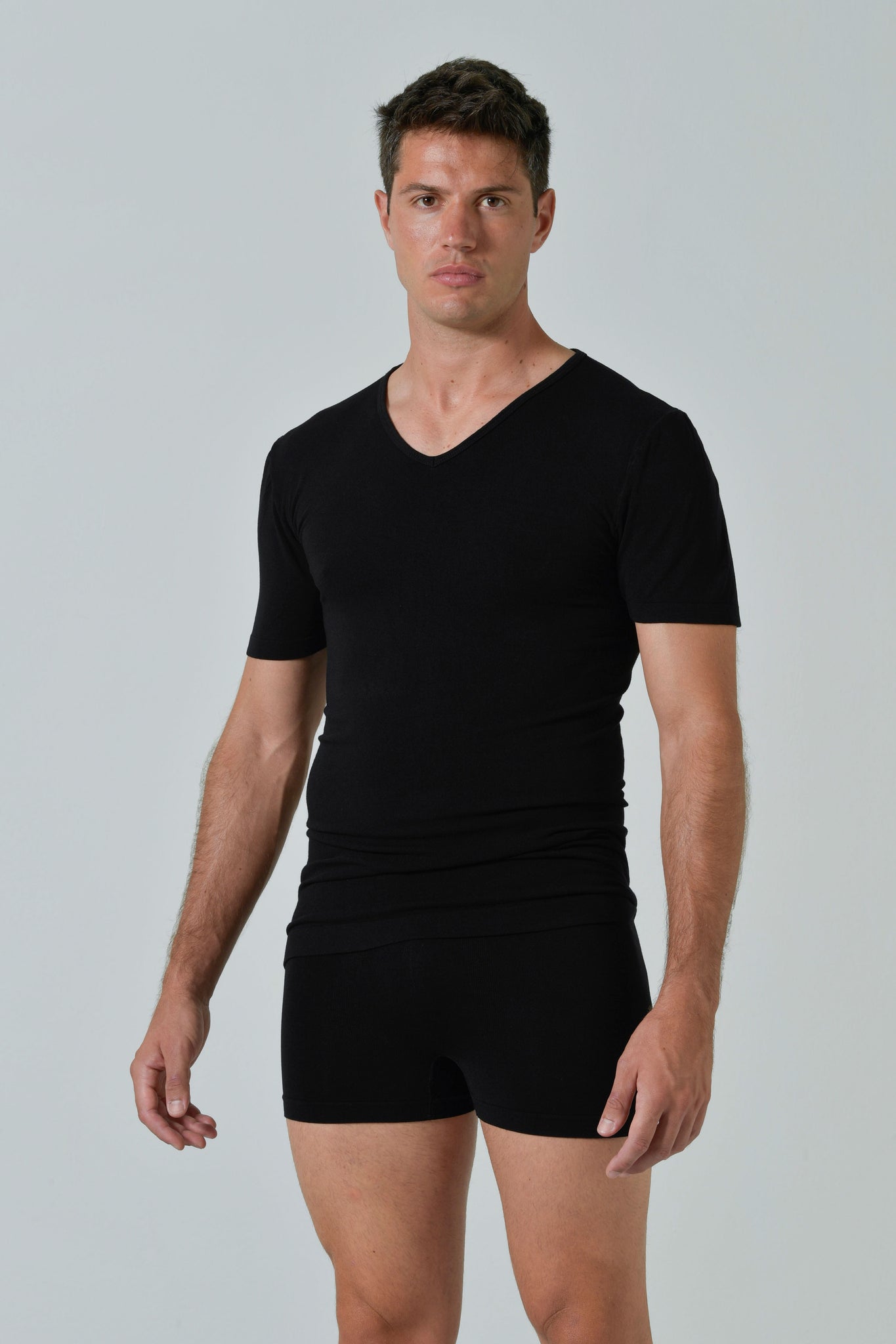 La Maglia scollo a V Uomo Soft Touch Bamboo è realizzata in morbida viscosa di bamboo, un tessuto naturalmente più soffice del cotone e perfetto per le pelli sensibili. Il design seamless con manica corta e scollo a V garantisce una vestibilità perfetta e un comfort superiore per ogni occasione.